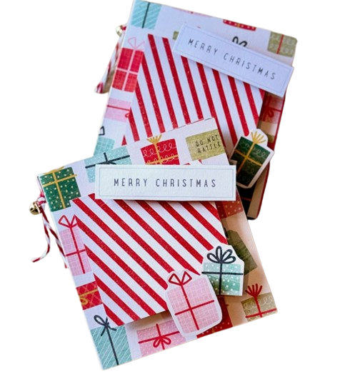 Mini álbum em scrapbooking com tema de papeis de Natal.